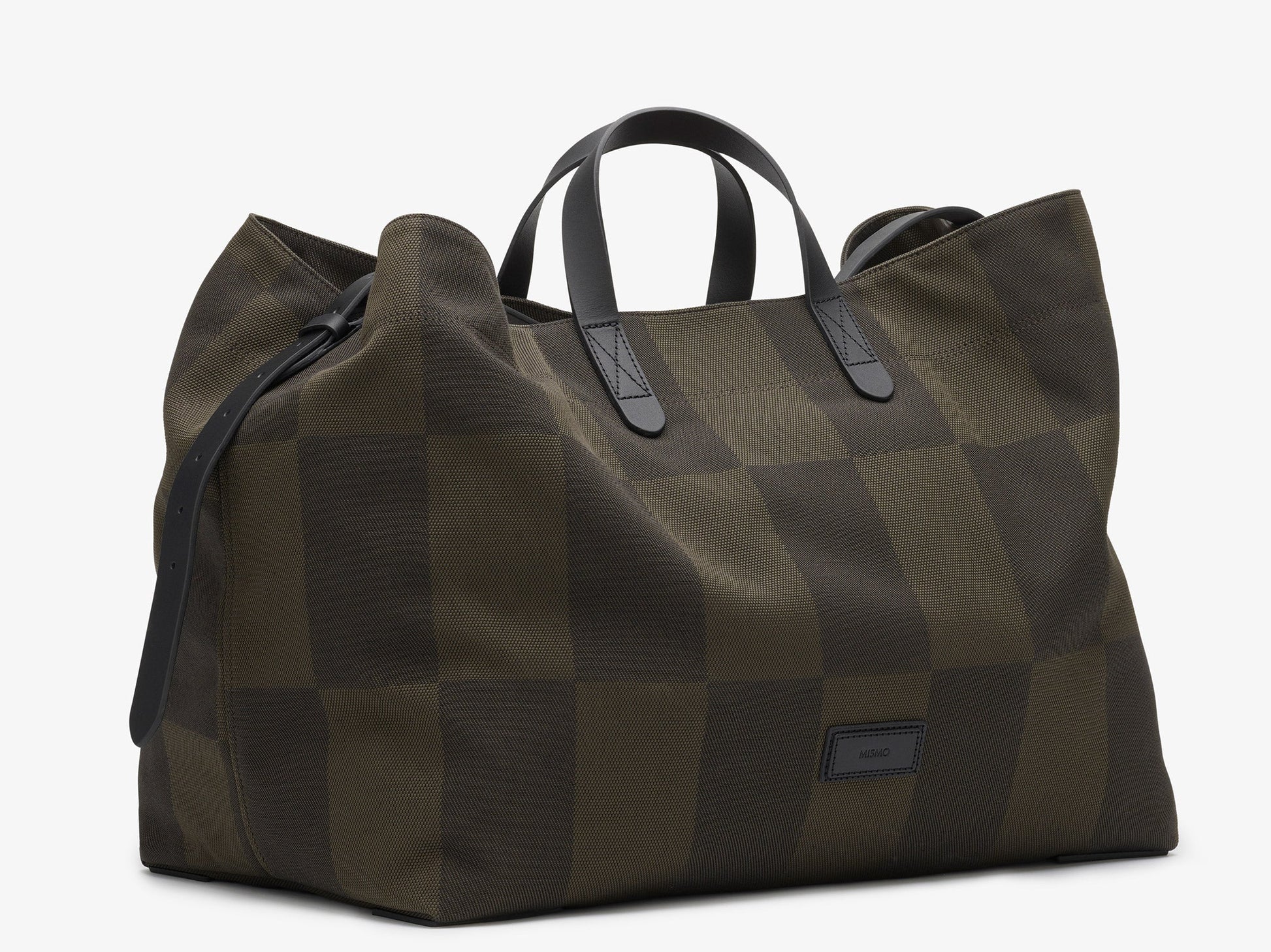 The spacious Haven features two inside hanging pockets in the main canvas material, one with a snap button and the other with a zipped pocket. A snap hook and a D-ring placed between the handles is used for closure. An adjustable belt strap running from gusset to gusset serves as a shoulder strap or as an extra closing mechanism when carried by the short handles.
