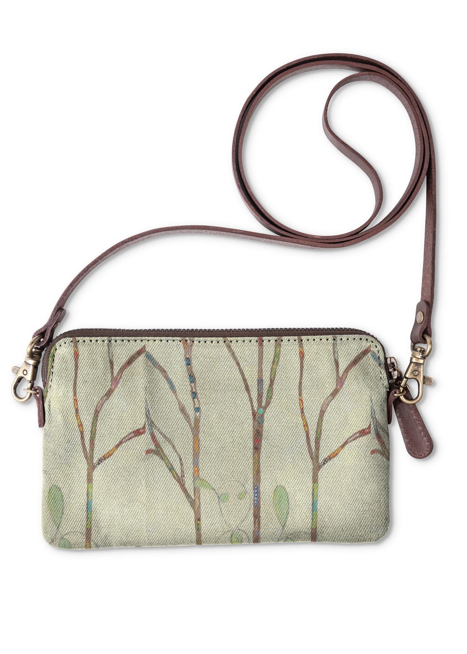 Make a statement with this clutch. Crafted from genuine leather and canvas and adorned with original art by independent designers.